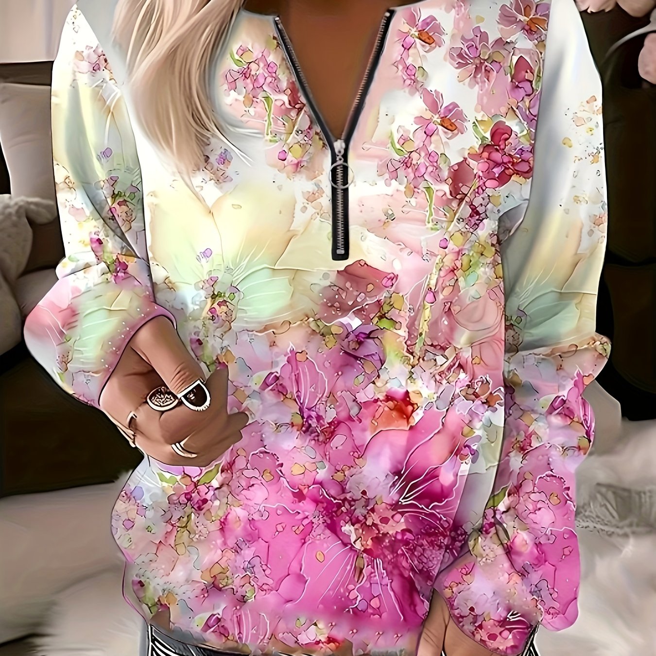FABULOUS Abstract Print Half Zip Blouse, Casual Long Sleeve Blouse, Women’s Clothing & SERVICE, THANK YOU 🙂