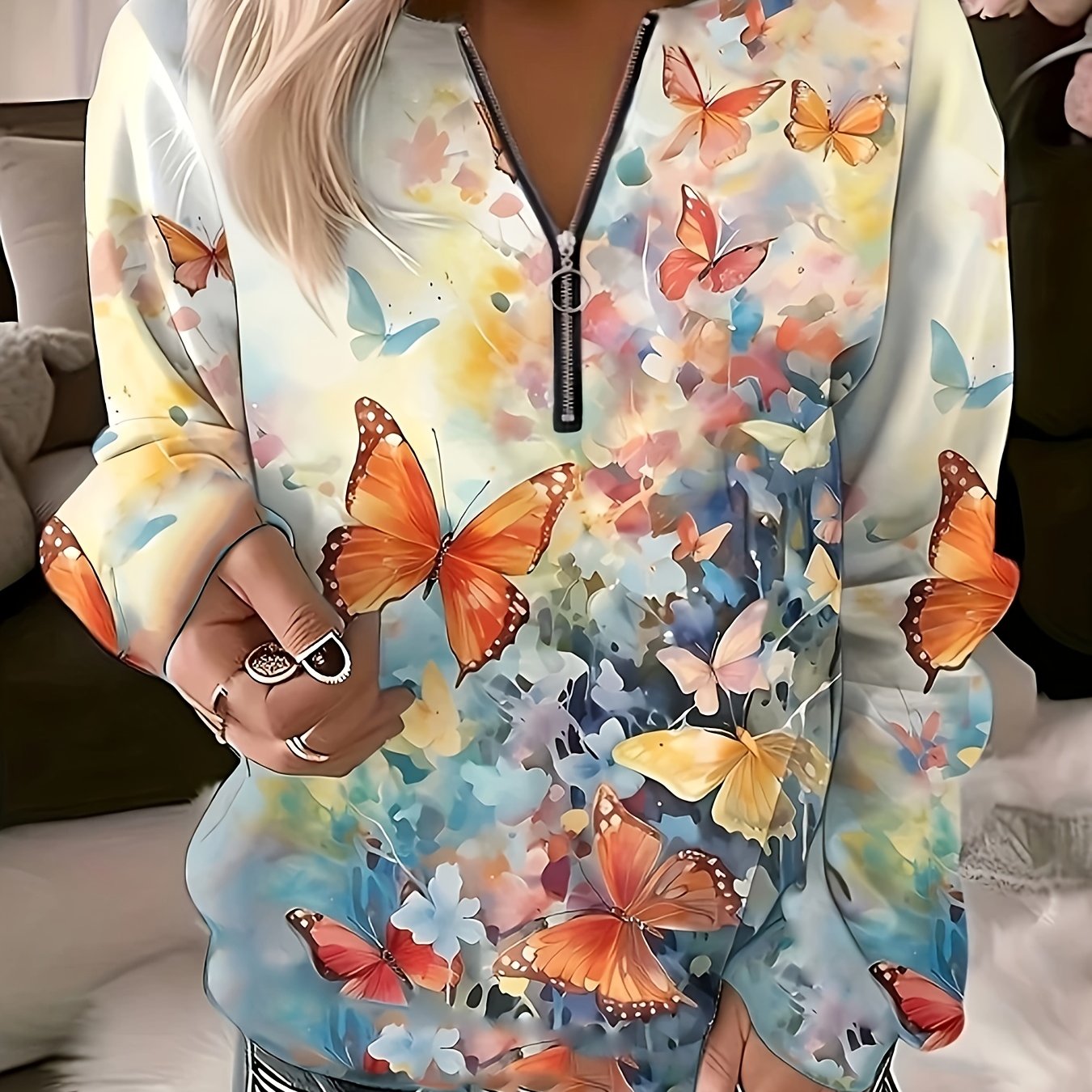 love this Abstract Print Half Zip Blouse, Casual Long Sleeve Blouse, Women’s Clothing and the fact i got it in perfect condition for the price is a plus 🙂
