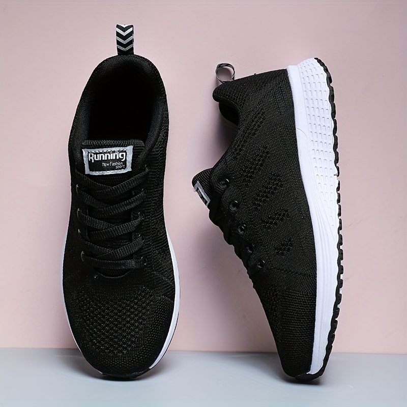 mens solid woven knit breathable sneakers comfy non slip lace up shoes for mens outdoor activities details 3