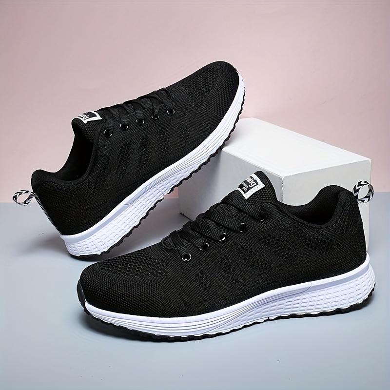 mens solid woven knit breathable sneakers comfy non slip lace up shoes for mens outdoor activities details 2