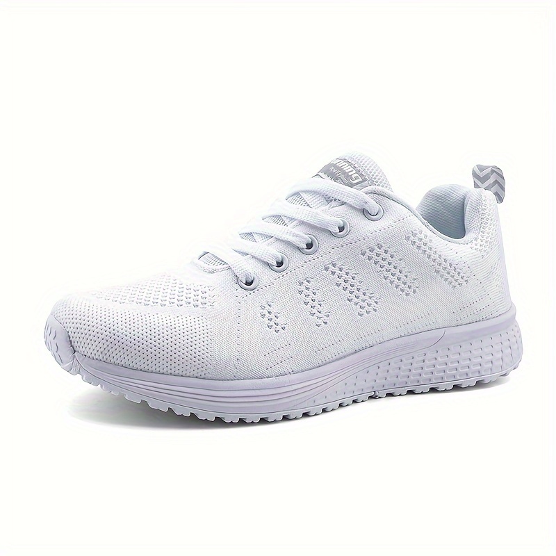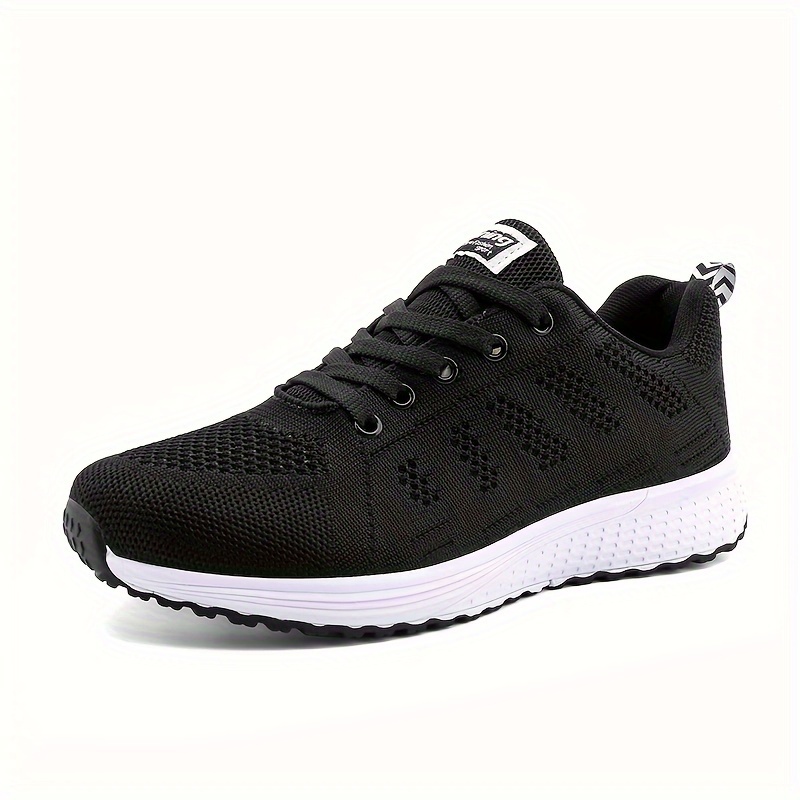Men’s Solid Woven Knit Breathable Sneakers, Comfy Non Slip Lace Up Shoes For Men’s Outdoor Activities