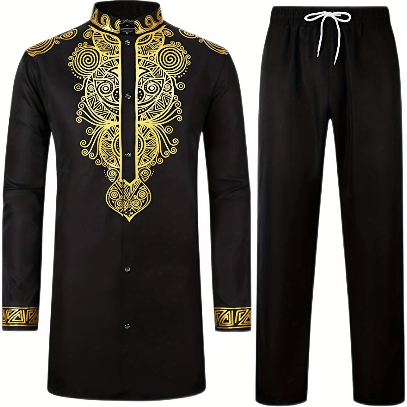Men’s Two-piece Suits, Abayas Outfit Long Sleeve Kaftan Tops & Pants Set , Formal Party African Men Dashiki Suit Shirt Pants Set Traditional Clothes Formal Dress