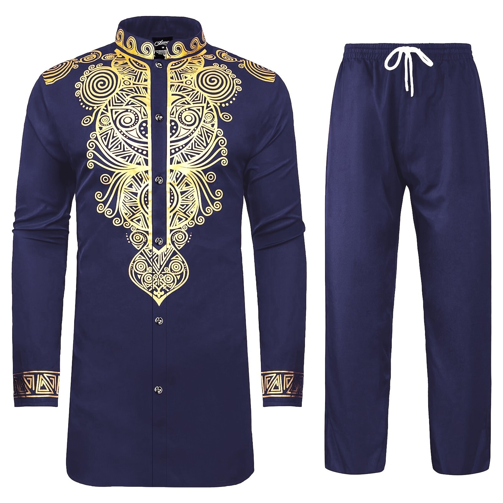 mens two piece suits abayas outfit long sleeve kaftan tops pants set formal party african men dashiki suit shirt pants set traditional clothes formal dress details 1