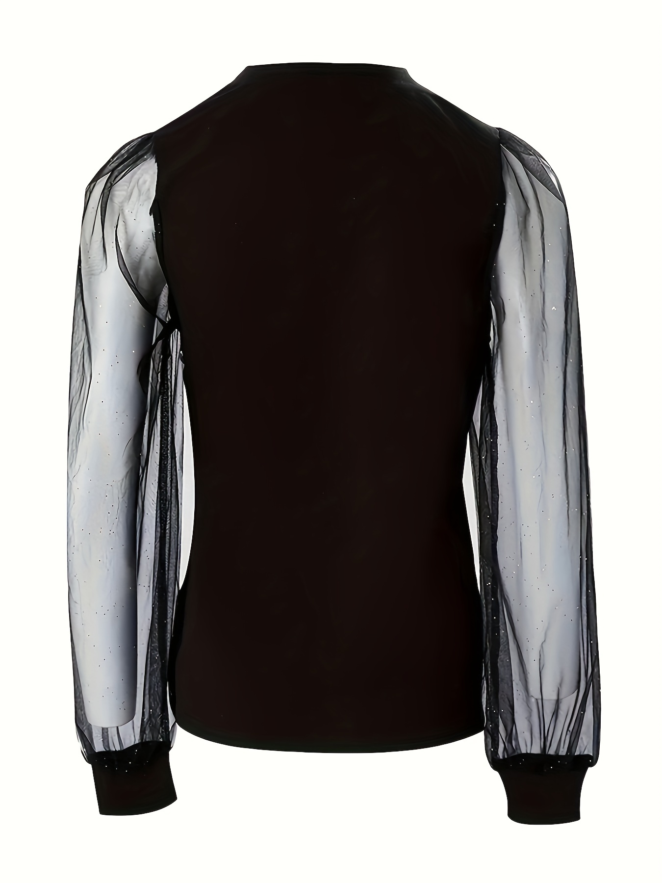 very good Mesh Sleeve Asymmetrical Neck Blouse, Casual Blouse For Spring & Fall, Women’s Clothing – 100% recommend