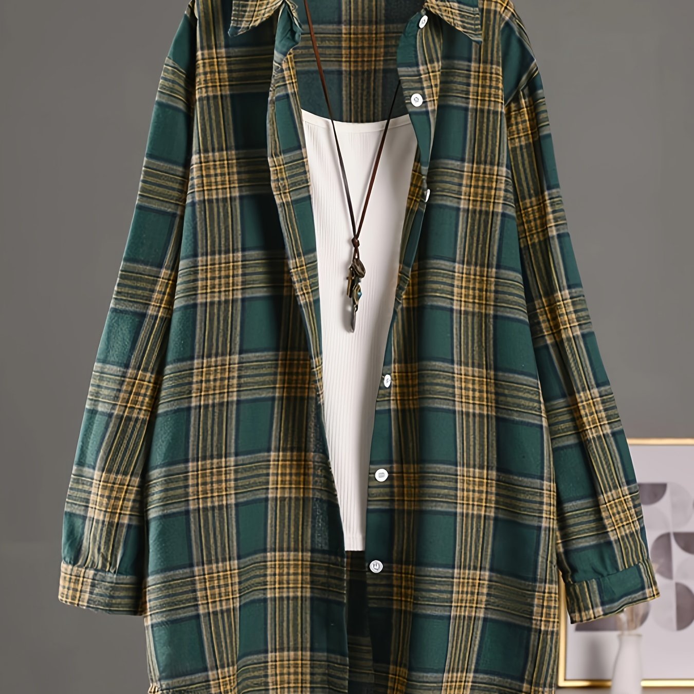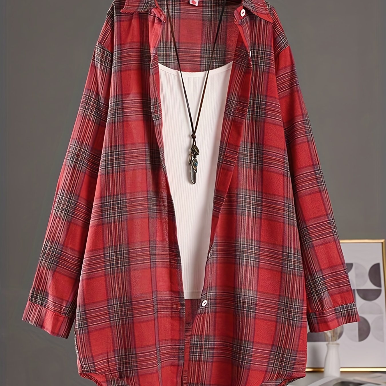 14 reviews for Plaid Print Polo Collar Shirt, Casual Long Sleeve Shirt For Spring & Fall, Women’s Clothing